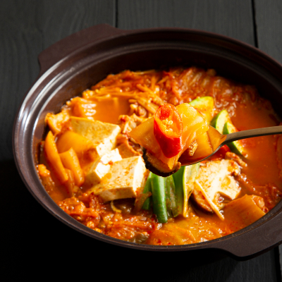 - Add the Kimchi Cooking Sauce, pork, napa cabbage, onion boil for 20 minutes. (medium heat)